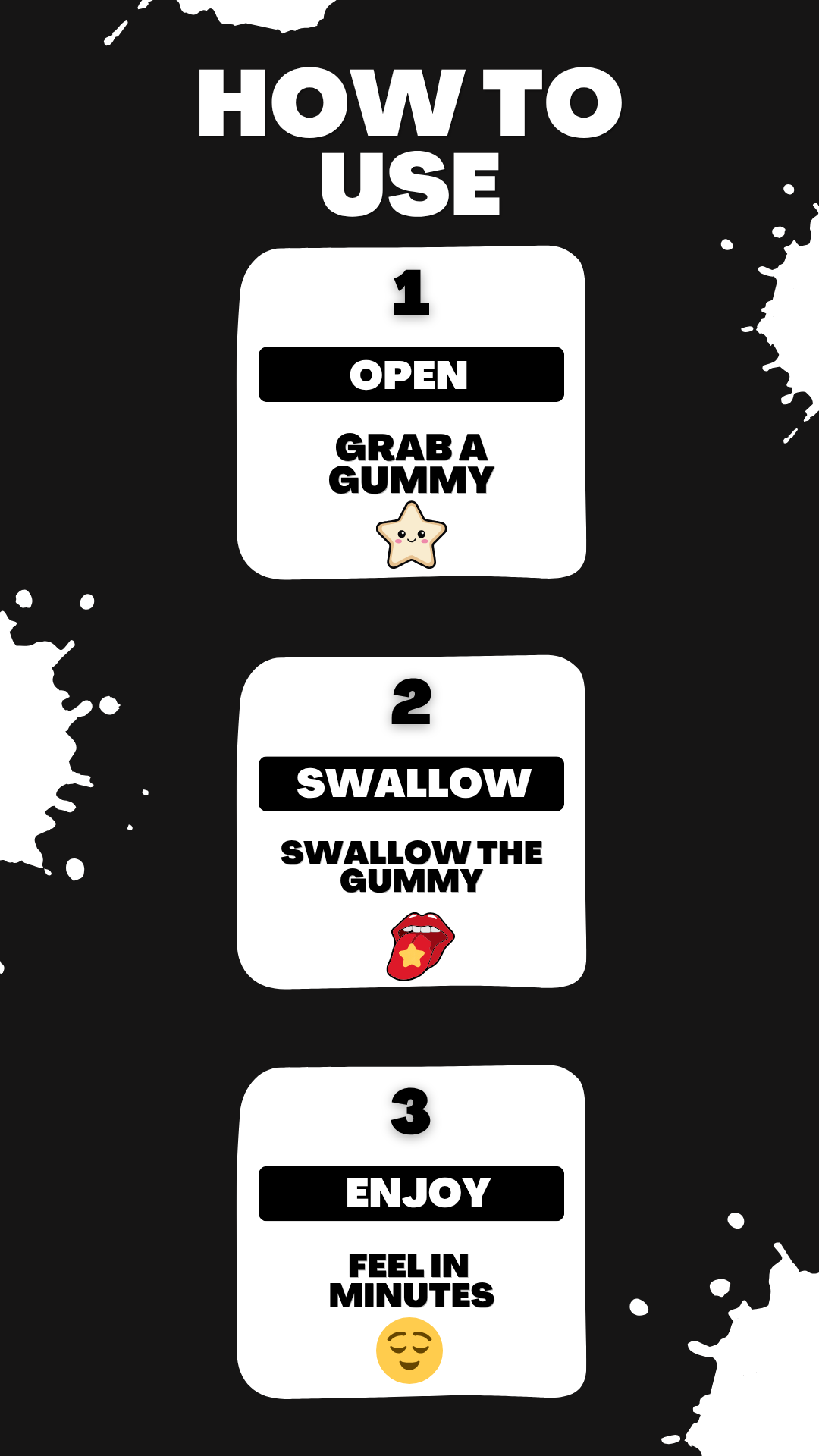 Once the gummy kicks in, you’ll feel more calm, relaxed, chill, relief and happier.
